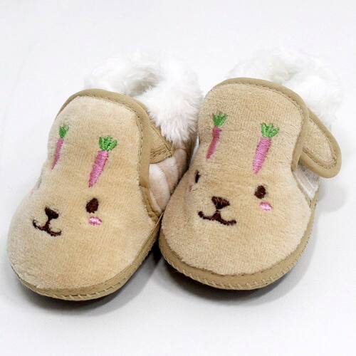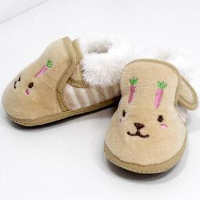 Pantufas Sapatinho Coelhinho Para Bebês Forrada com fecho aderente Marrom - 0 a 12 Meses -