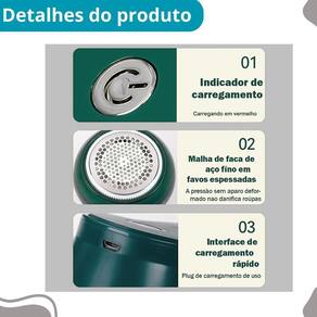 Design portátil e moderno, Lâminas de aço inoxidável com grade protetora em favo de, Recarga rápida por porta usb, Uso sem fio, garantindo praticidade, Leve, silencioso e fácil de transportar, Seguro para todos os tipos de tecidosTipo