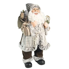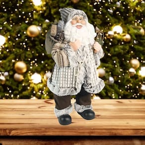 Adicione um toque de elegância rústica à sua decoração natalina com este Papai Noel decorativo de 45cm. Vestido com um casaco de pelúcia de luxo nas cores branco e marrom, ele traz um visual aconchegante e sofisticado. O saco de presentes é ricamente decorado, enquanto o gorro, com um charmoso guizo na ponta, completa o visual festivo. Ideal para mesas, aparadores ou prateleiras, esse Papai Noel é a peça perfeita para uma decoração de Natal com estilo rústico e refinado.