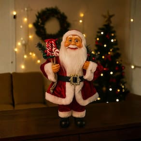 Encante sua decoração natalina com este elegante Papai Noel Decorativo de 40cm, confeccionado com materiais premium e acabamento impecável. O destaque fica para o casaco e gorro em veludo vermelho tradicional, que trazem um toque clássico e sofisticado à peça, perfeito para compor decorações de Natal luxuosas e cheias de charme.