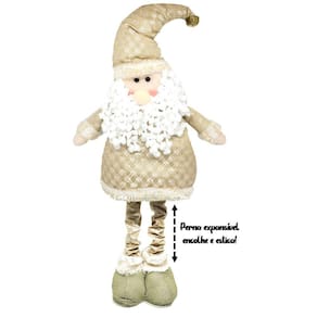 Características do Papai Noel em Pelúcia Dourado Luxo com Perna Expansível: