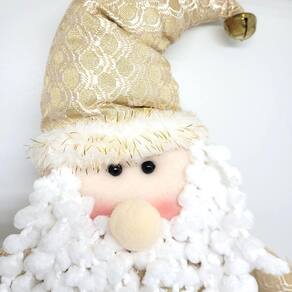 Características do Papai Noel em Pelúcia Dourado Luxo com Perna Expansível: