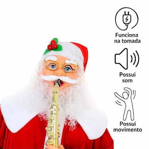 Presença Imponente: Com 1,30m de altura, este Papai Noel é uma figura que chama a atenção e enche o ambiente com a verdadeira essência do Natal. Talento Musical: Equipado com um saxofone, ele toca melodias envolventes que trazem alegria e espírito festivo, fazendo de cada momento uma celebração.
