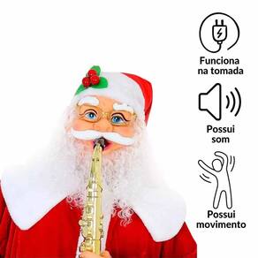 Presença Imponente: Com 1,30m de altura, este Papai Noel é uma figura que chama a atenção e enche o ambiente com a verdadeira essência do Natal. Talento Musical: Equipado com um saxofone, ele toca melodias envolventes que trazem alegria e espírito festivo, fazendo de cada momento uma celebração.