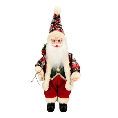 Papai Noel Musical Pequeno Vermelho Xadrez - Decoração de Natal 40cm