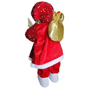 Encante sua decoração natalina com este Papai Noel, repleto de charme e brilho. Vestido com roupa vermelha de veludo repleto com lantejoulas e forro dourado cintilante, ele traz um toque sofisticado e festivo para qualquer ambiente.