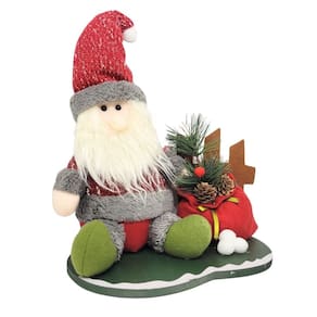 -01 Unidade Papai Noel Pelúcia Natal na Cerca Base Madeira 23cm Saco de Presentes decorado Pinhas e Pick