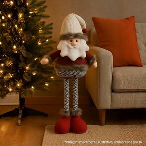 O grande diferencial deste enfeite é o seu sistema retrátil de pernas, que pode ser ajustado entre 36cm e 50cm de altura, permitindo adaptar a peça em diferentes espaços e decorações. Seja em mesas, aparadores, prateleiras ou até mesmo no pé da árvore, este Papai Noel é a escolha perfeita para criar um ambiente acolhedor e sofisticado.