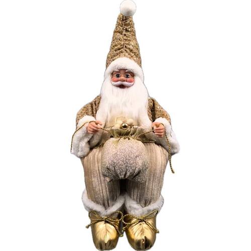 Papai Noel Sentado Gold de Tecido - Decoração de Natal 40cm Transforme sua decoração natalina com o Papai Noel Sentado Gold de Tecido. Com 40cm de altura, este enfeite une o brilho do dourado com a suavidade do tecido, criando uma peça de decoração que adiciona elegância e encanto a qualquer ambiente festivo. Especificações do Produto: Altura: 40cm Cor: Dourado Gold Material: Tecido de alta qualidade Características do Produto: Design Elegante: Vestido em um manto dourado luxuoso, este Papai Noel em posição sentada é ideal para decorações natalinas que buscam um toque de sofisticação e glamour. Posição Sentada: Este enfeite é perfeito para ser colocado em cadeiras, estantes, ou qualquer superfície elevada, trazendo um visual acolhedor e festivo ao ambiente. Material Premium: Feito de tecido de alta qualidade, este Papai Noel garante durabilidade e um visual impecável por muitos natais. Detalhes Cuidadosos: Cada elemento do traje dourado, desde os detalhes bordados até os acessórios, é meticulosamente trabalhado para oferecer uma peça de decoração autêntica e atraente.