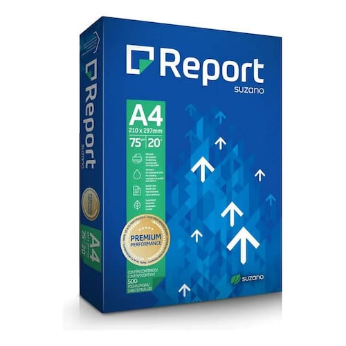 Tipo: Papel Sulfite Cor: Branco Gramatura: 75g/m Formato: A4 210mm x 297mm Quantidade: 500 Folhas por Resma Marca: Report Confiança e qualidade comprovada Compatibilidade: Impressoras a Laser, Jato de Tinta e Copiadoras