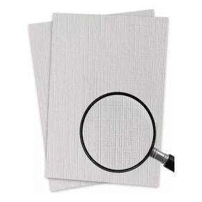 Papel texturizado, cuja superfície foi alterada com a gravação em ambos os lados, reproduzindo a superfície do tecido linho fino.