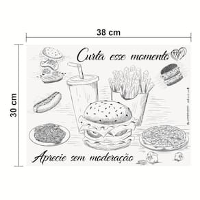 Dimensão: 30cm x 38cm (A/C) Modelo: Impresso. Material: papel celulose virgem branca acoplado (apropriado para contato direto com alimentos). Itens inclusos: 1.000 unidades (2 caixas).