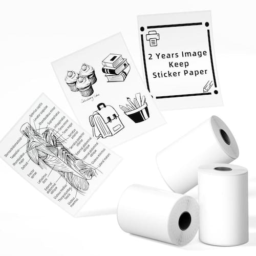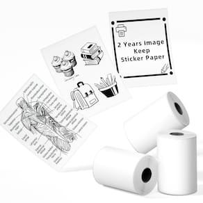 Funciona com - Papel adesivo branco compatível com a mini impressora M02X/T02. Ao colocar o papel no suporte da impressora, aperte primeiro o rolo de papel. Coloque o lado da impressão voltado para cima.