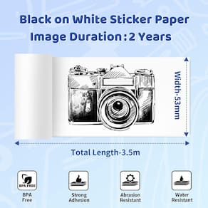 Papel adesivo branco Phomemo - 2 anos de papel adesivo preto sobre branco 50 mm x 3,5 m, 3 rolos