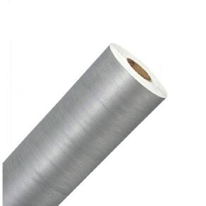 Papel contact estampado Aço Escovado Prata vem com uma largura de 45 centimetros e o comprimento é de 2 metros.