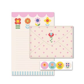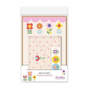 Embalagem com quatro folhas de papel de carta estampado, formato 15, 5 cm x 23 cm, papel offset 90 g/m2. Acompanham quatro envelopes estampados, em papel offset 120 g/m2 e quatro adesivos fofinhos. Um mimo!