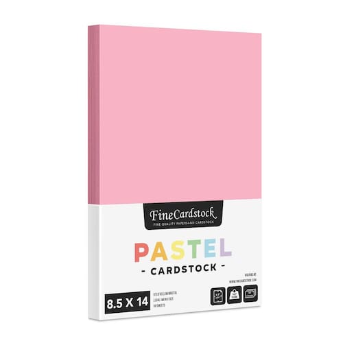 - CONTAGEM POR PACOTE — Contém 50 folhas de cartolina em tons pastel. Cada folha mede 8,5 x 14 polegadas (tamanho legal/do menu).