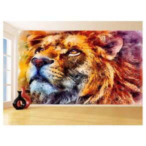 Papel De Parede 3D Animais Leão Rosto Rei Olhar 3,5M Anm447