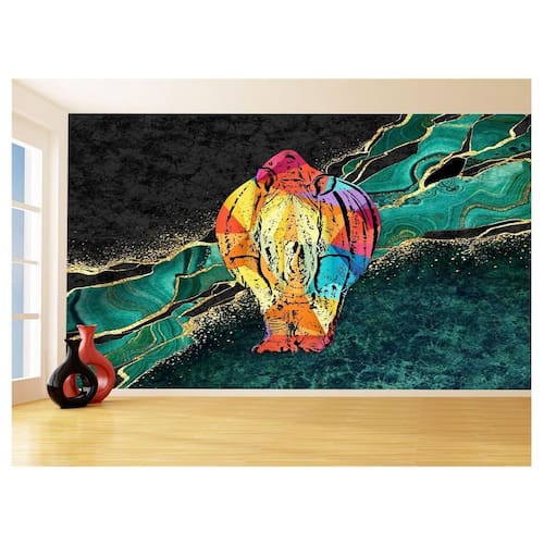 Papel De Parede 3D Animais Pop Art Rinoceronte 3,5M Pxa485