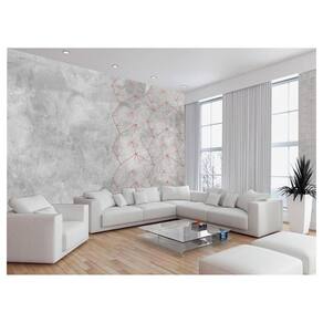 Papel De Parede 3D Concreto Linhas Dourado Rose 3,5M Kkt240