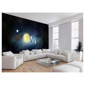 A impressão é feita em vinil adesivo. É um material lavável, impermeável, autocolante e antimofo. O produto cobre uma área de 3,50m, contando com 1,75 metro de altura por 2 metros de largura.