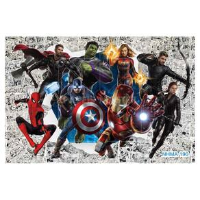 A impressão é feita em vinil adesivo. É um material lavável, impermeável, autocolante e antimofo. O produto cobre uma área de 3,50m, contando com 1,75 metro de altura por 2 metros de largura.