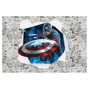 A impressão é feita em vinil adesivo. É um material lavável, impermeável, autocolante e antimofo. O produto cobre uma área de 3,50m, contando com 1,75 metro de altura por 2 metros de largura.