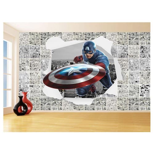 A impressão é feita em vinil adesivo. É um material lavável, impermeável, autocolante e antimofo. O produto cobre uma área de 3,50m, contando com 1,75 metro de altura por 2 metros de largura.