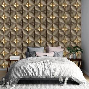 Papel de parede 3d madeira e dourado geometrico autocolante