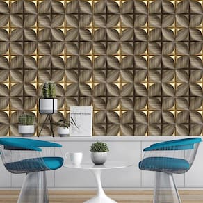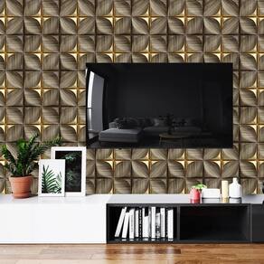 Papel de parede 3d madeira e dourado geometrico autocolante
