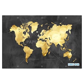 Papel De Parede 3D Mapa Mundi Concreto Dourado 3,5M Nmu48