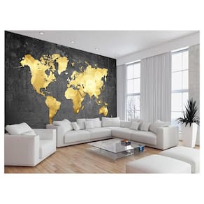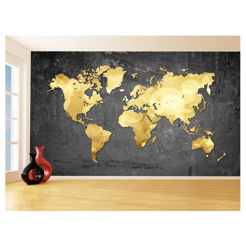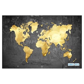 Papel De Parede 3D Mapa Mundi Concreto Dourado 3,5M Nmu53