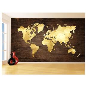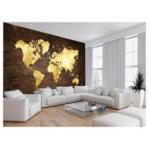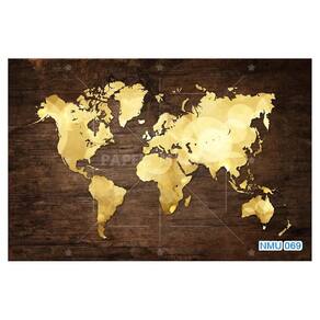 Papel De Parede 3D Mapa Mundi Madeira Arte Cores 3,5M Nmu69