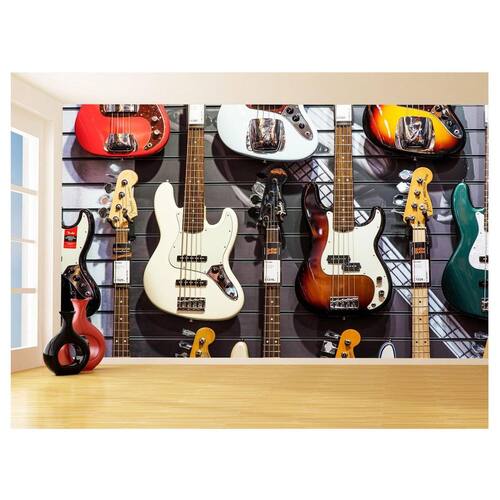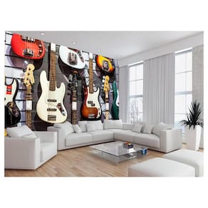 Papel De Parede 3D Musica Guitarra Cores Loja 3,5M Mus119