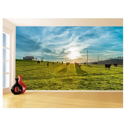 Papel De Parede 3D Por Do Sol Campo Fazenda Céu 3,5M Pds49