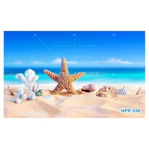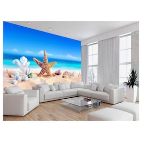 Papel De Parede 3D Praia Areia Estrelas Mar Céu 3,5M Npr336