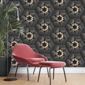 Papel De Parede 3D Preto E Dourado Geometrico Autocolante