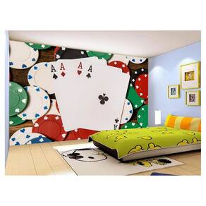 Papel De Parede 3D Salão De Jogos Cartas Poker 3,5M Jcs71