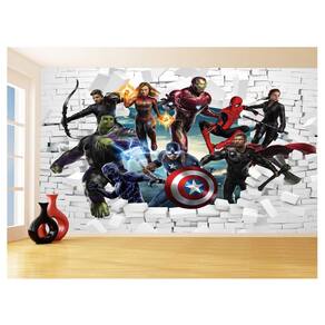 Papel De Parede 3D Vingadores Entrando Quarto 3,5M Nhma110