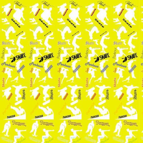 Papel De Parede Adesivo Amarelo Desenhos Skate Decorativo