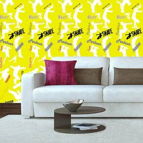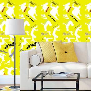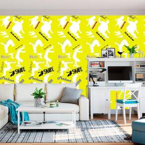 Papel de parede adesivo amarelo desenhos skate decorativo