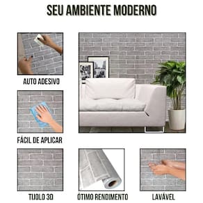 Em modelo Tijolo Rústico Cinza e Branco, cada unidade tem a medida de 5 Metros x 45 Centímetros, com poder de cobertura de 2,25M.