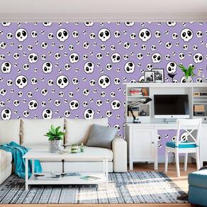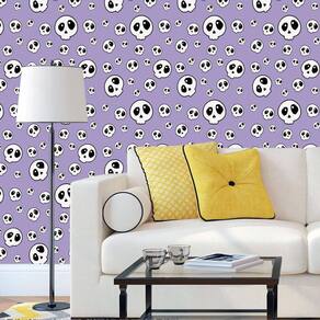 Papel de parede adesivo lilas decorativo caveirinha lavavel