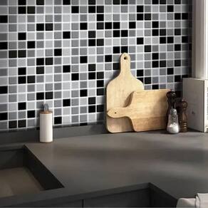 Papel De Parede Adesivo Pastilha Mesclado Cinza 300X52Cm