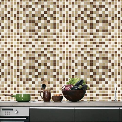 Papel De Parede Adesivo Pastilha Mesclado Marrom 300X52Cm