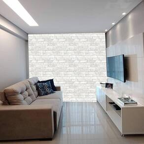 Papel De Parede Adesivo Tijolo Pedra Branca Rústico 300X52Cm