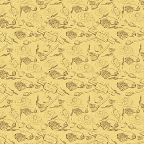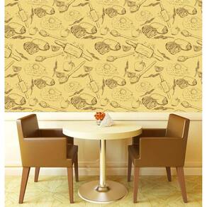 Papel de parede amarelo desenhos ovos e pães adesivo lavável
