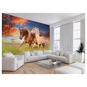 Papel De Parede Animais Casal Cavalos Fazenda 3,5M Anm314