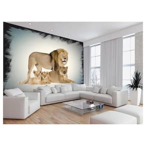 Papel De Parede Animais Leão Família Filhotes 3,5M Anm542