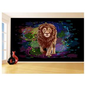 Papel De Parede Animais Leão Rosto Arte Cores 3,5M Anm489